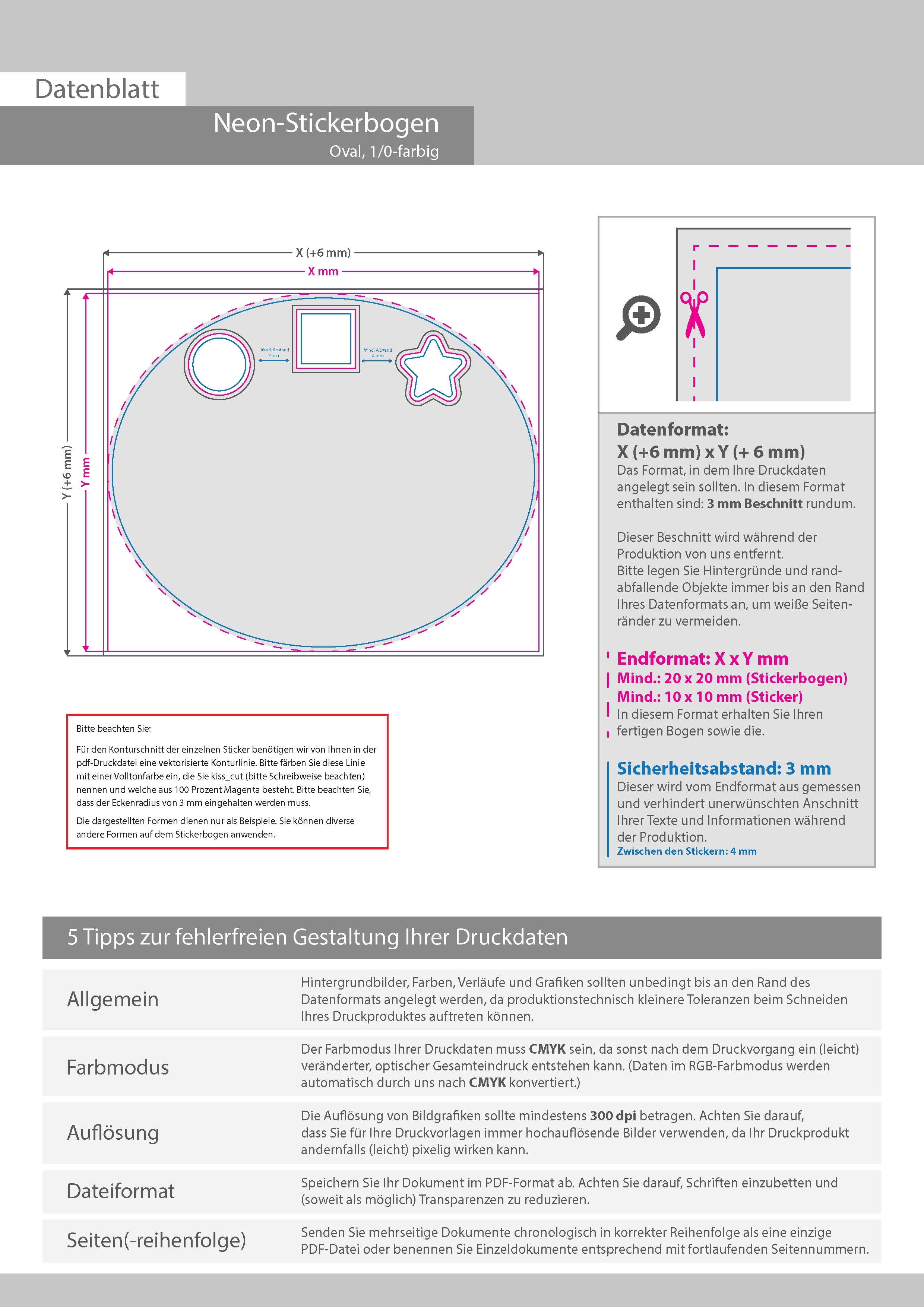 Neon-Stickerbogen 1/0 farbig bedruckt oval (oval konturgeschnitten)