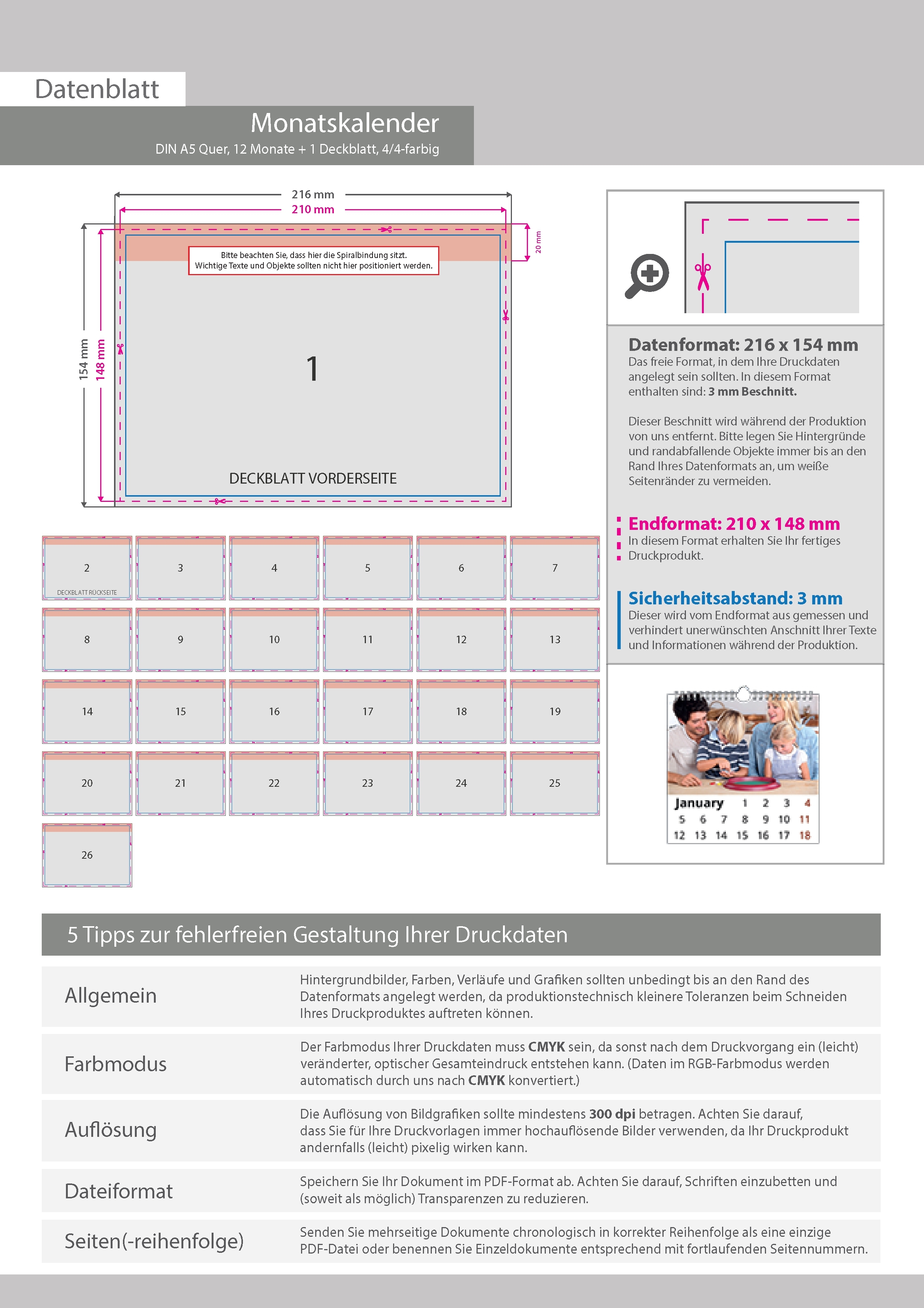 Monatskalender 13 Blatt (12 Monate + Deckblatt)