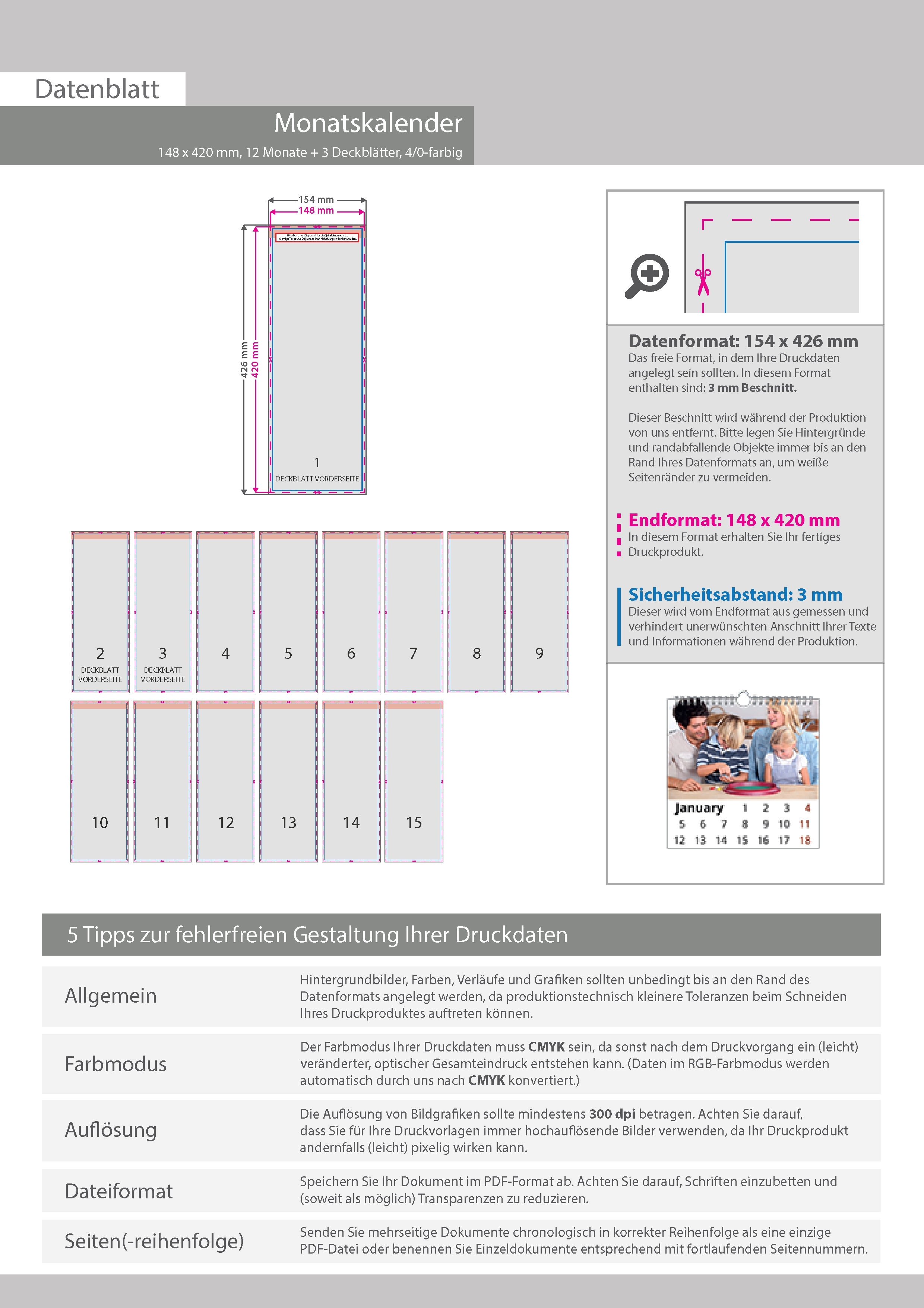 Monatskalender 15 Blatt (12 Monate + 3 Deckblätter)