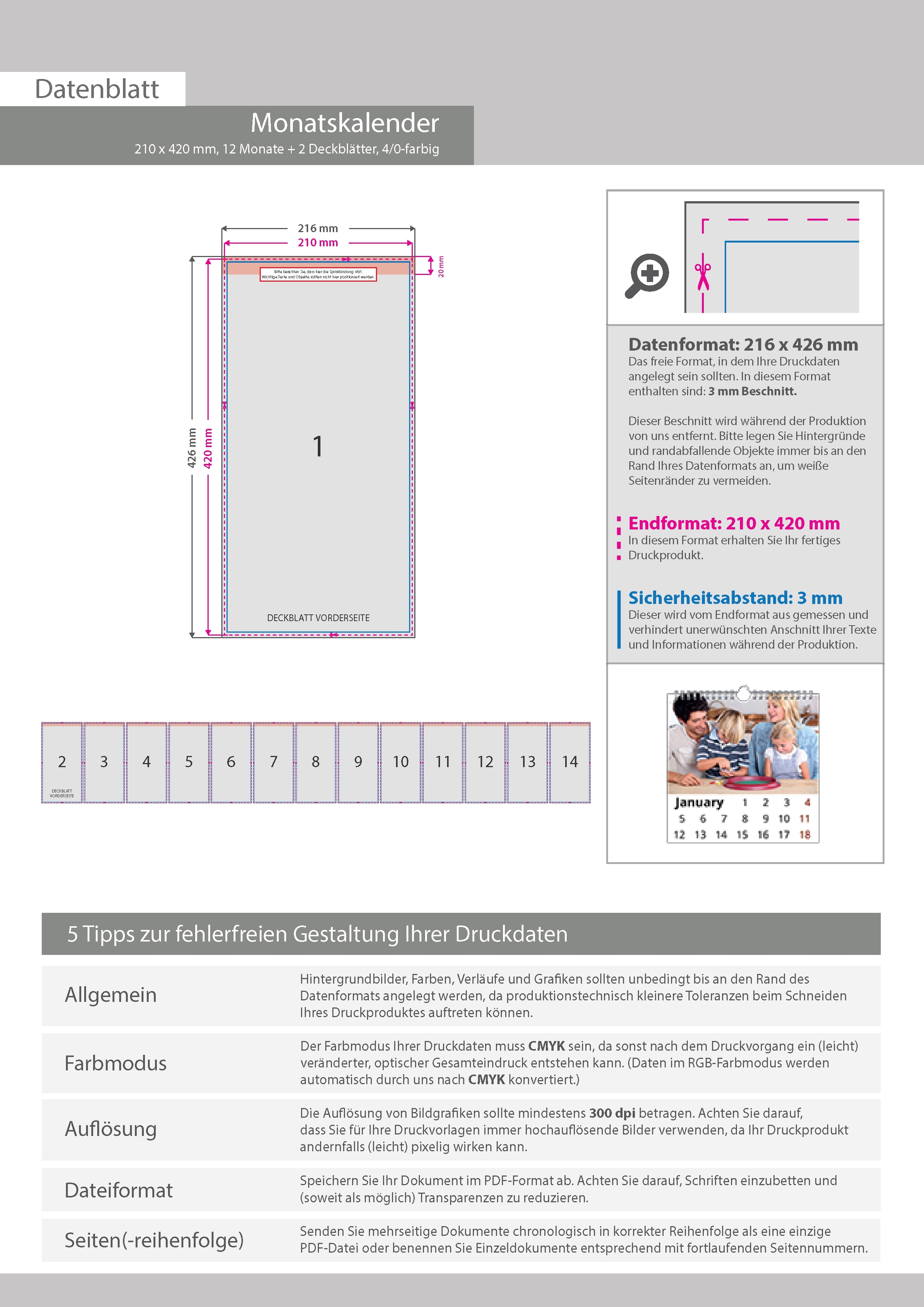 Monatskalender 14 Blatt (12 Monate + 2 Deckblätter)