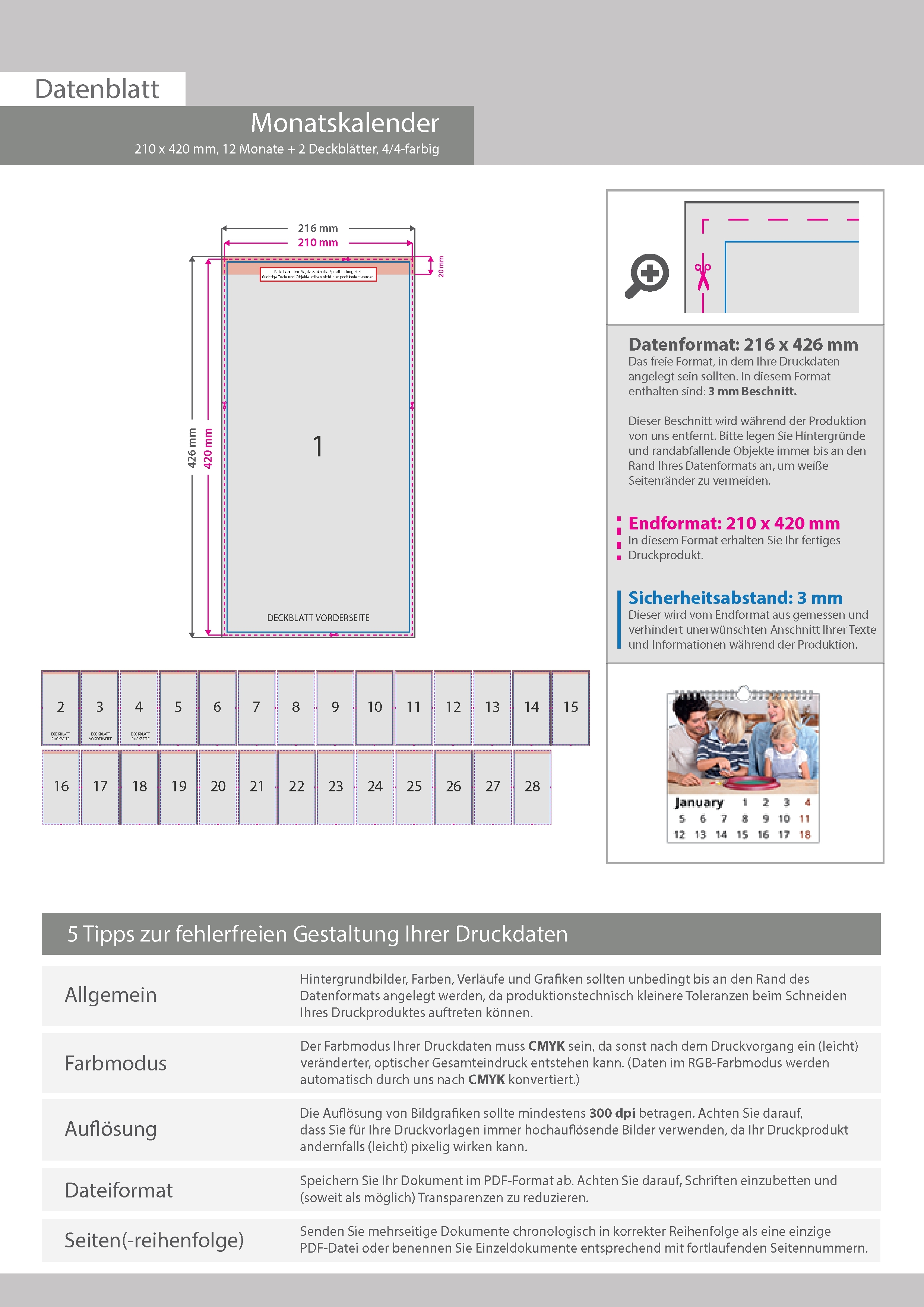 Monatskalender 14 Blatt (12 Monate + 2 Deckblätter)