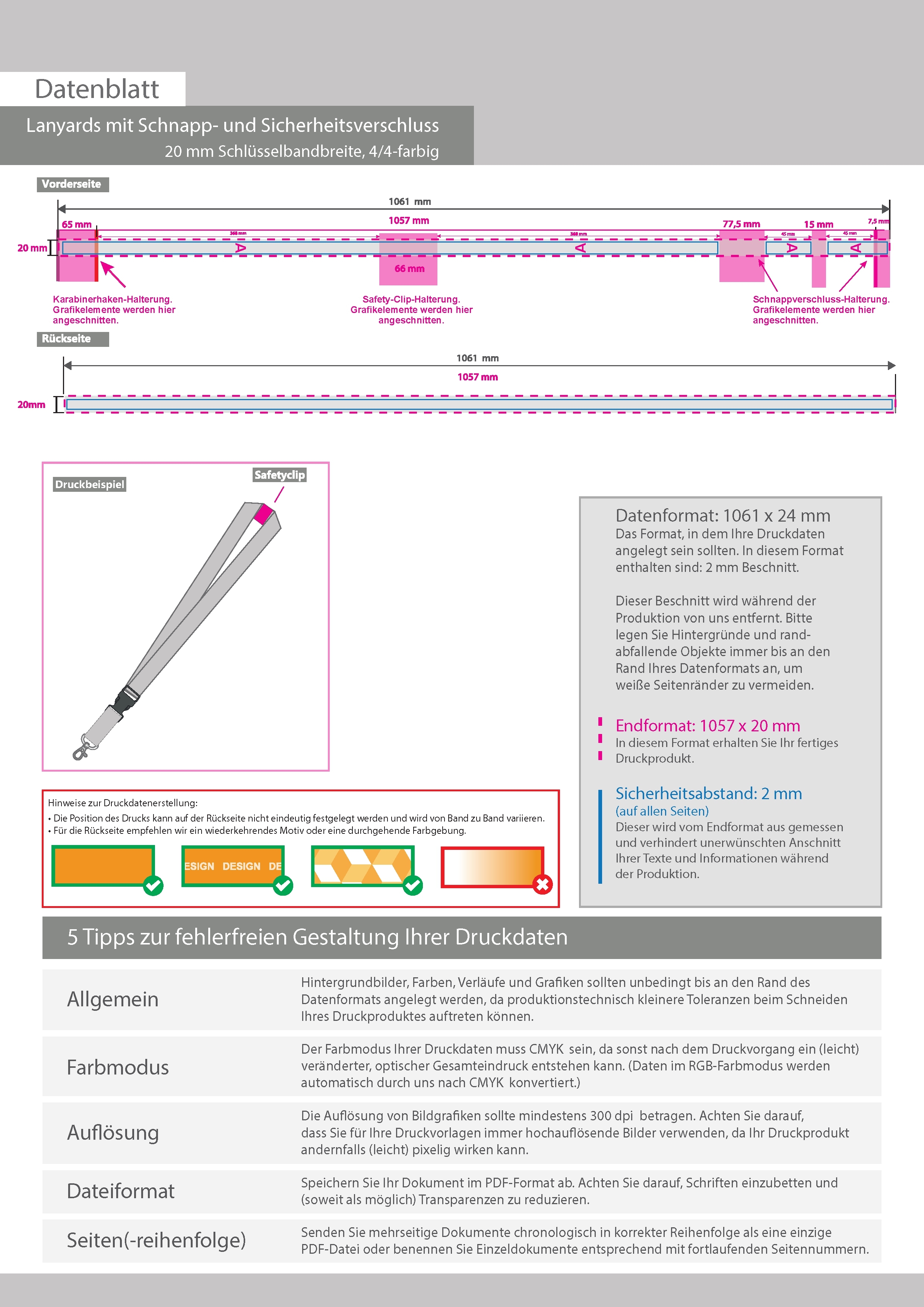 Lanyards mit Schnapp- und Sicherheitsverschluss, 20 mm Schlüsselbandbreite, 4/4-farbig beidseitig bedruckt
